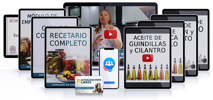 Guías PDF para tener acceso al conocimiento de una manera rápida y en cualquier momento. Podrás imprimirlas si lo deseas. Recetario Completo, Guía de Conservas y el excelente Módulo de Emprendimiento.