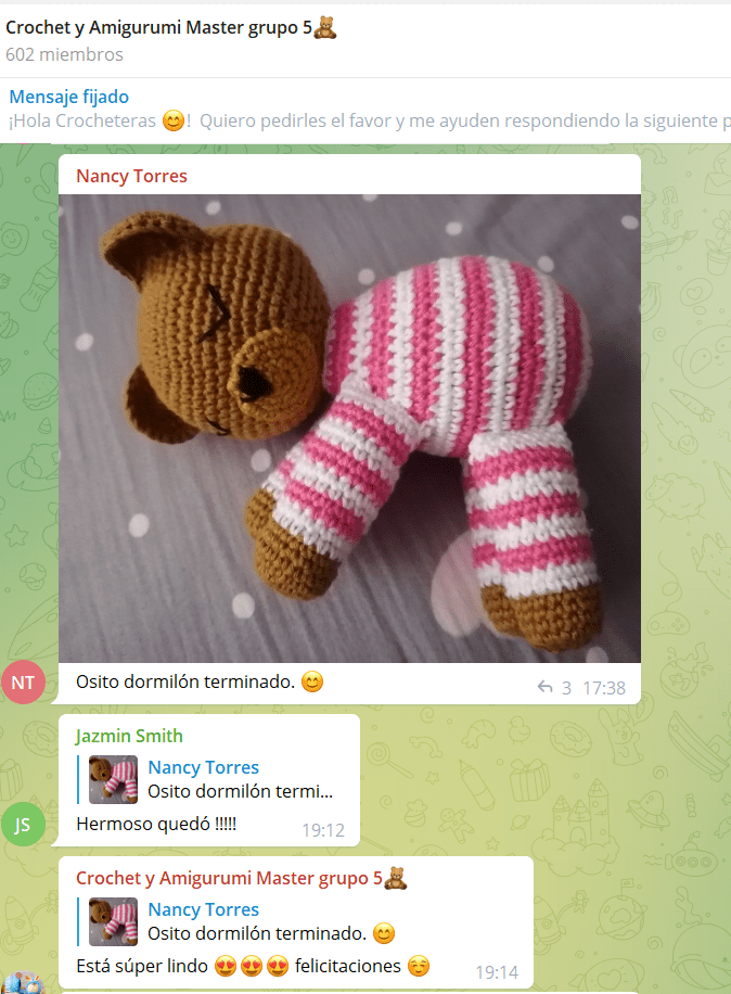 Comunidad de crocheteras, en donde podrás compartir tus proyectos y resolver dudas con la profesora y tus compañeras.